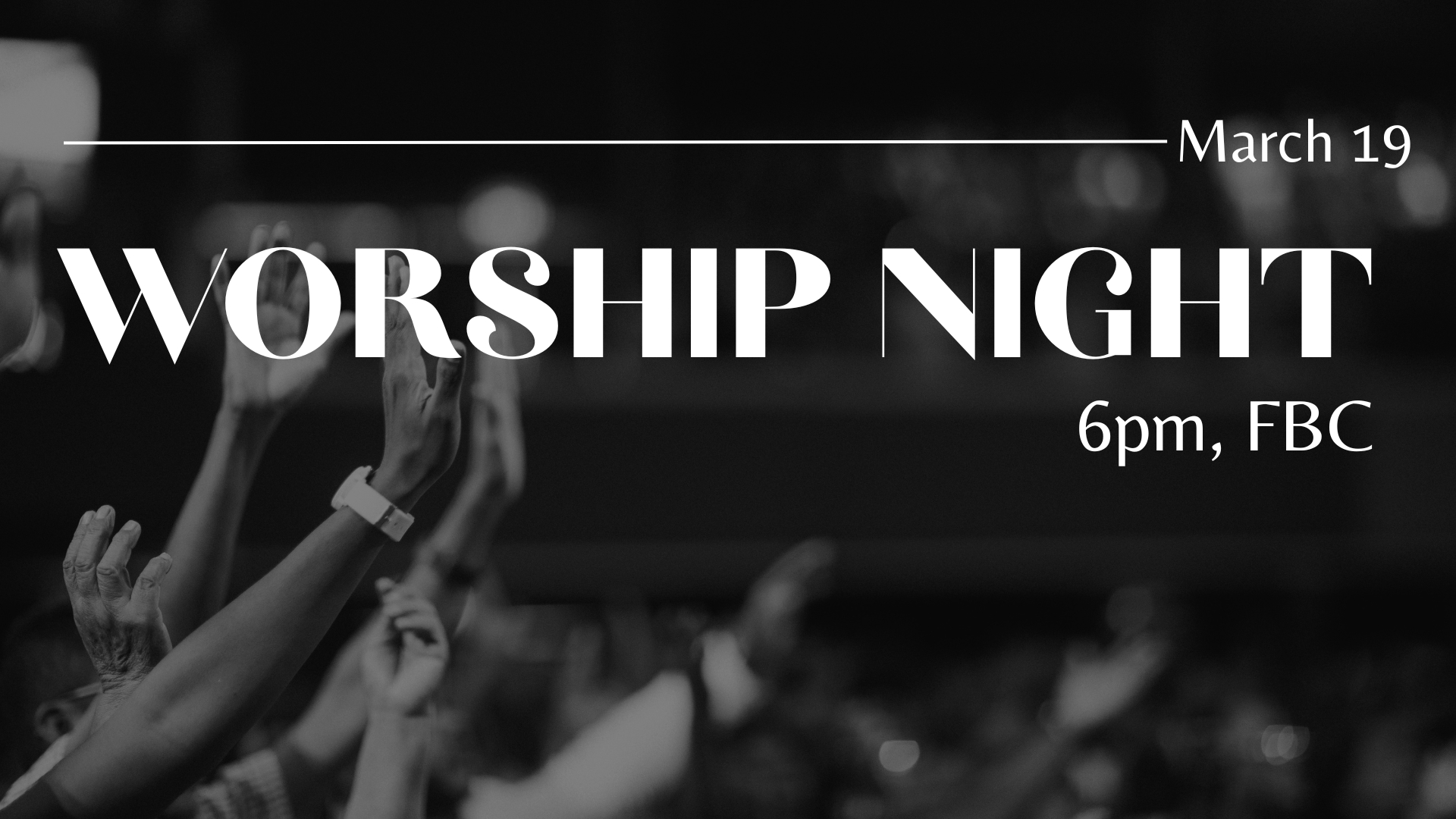 We will be meeting in the FBC Sanctuary on Thursday March 19, at 6pm.